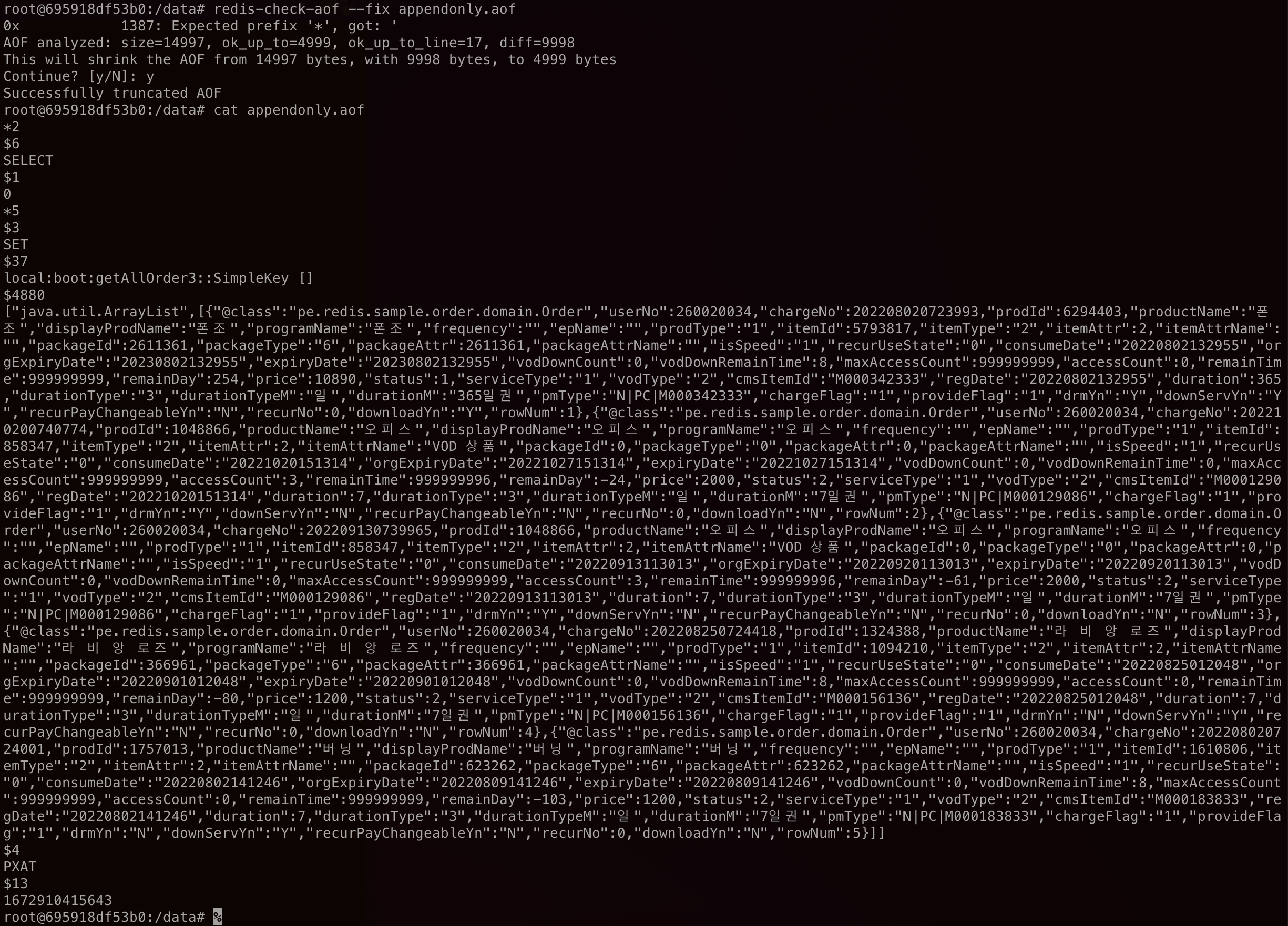 appendonly.aof 파일 내용 확인 및 --fix 옵션 사용